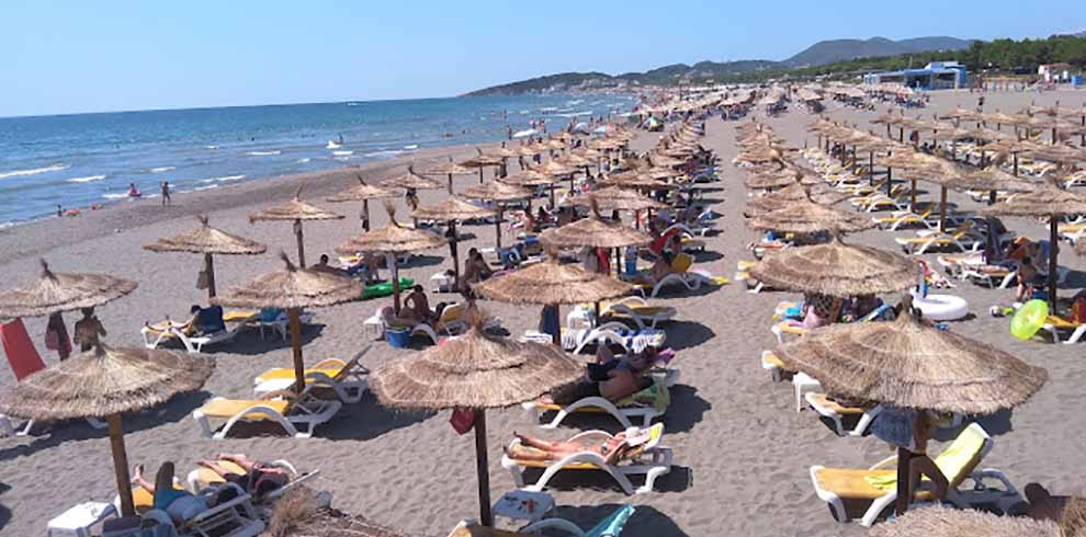 Strandolás az Ulcinj melletti Velika Plaža homokos strandon